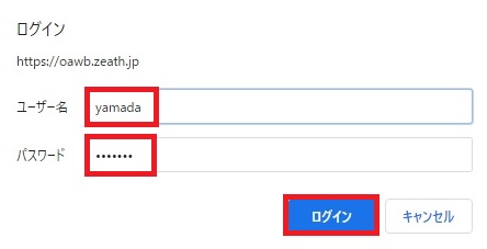 登録したユーザー名とパスワードを入力して「ログイン」をクリック。